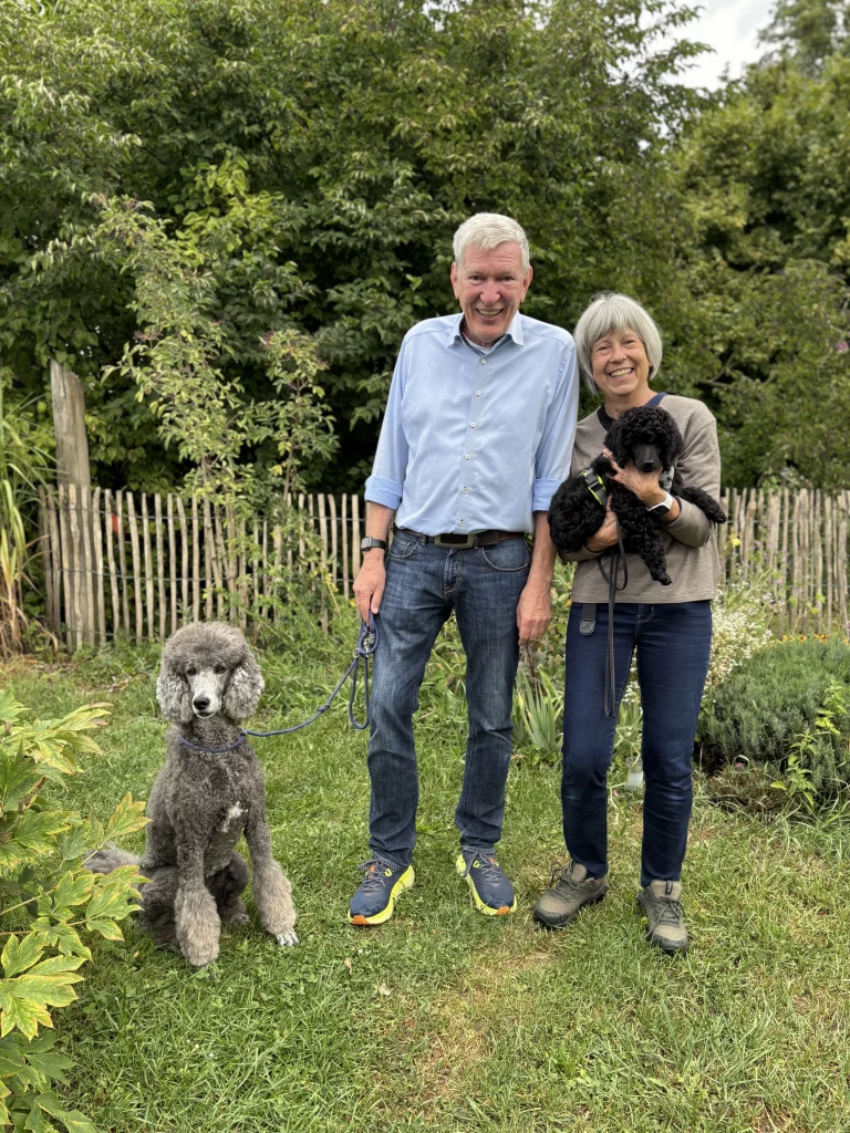 Und noch einmal bekannte Gesichter: Ulla und Peter mit Jackie (Wurfschwester unserer Sally aus 2018) und Ronja (orange)